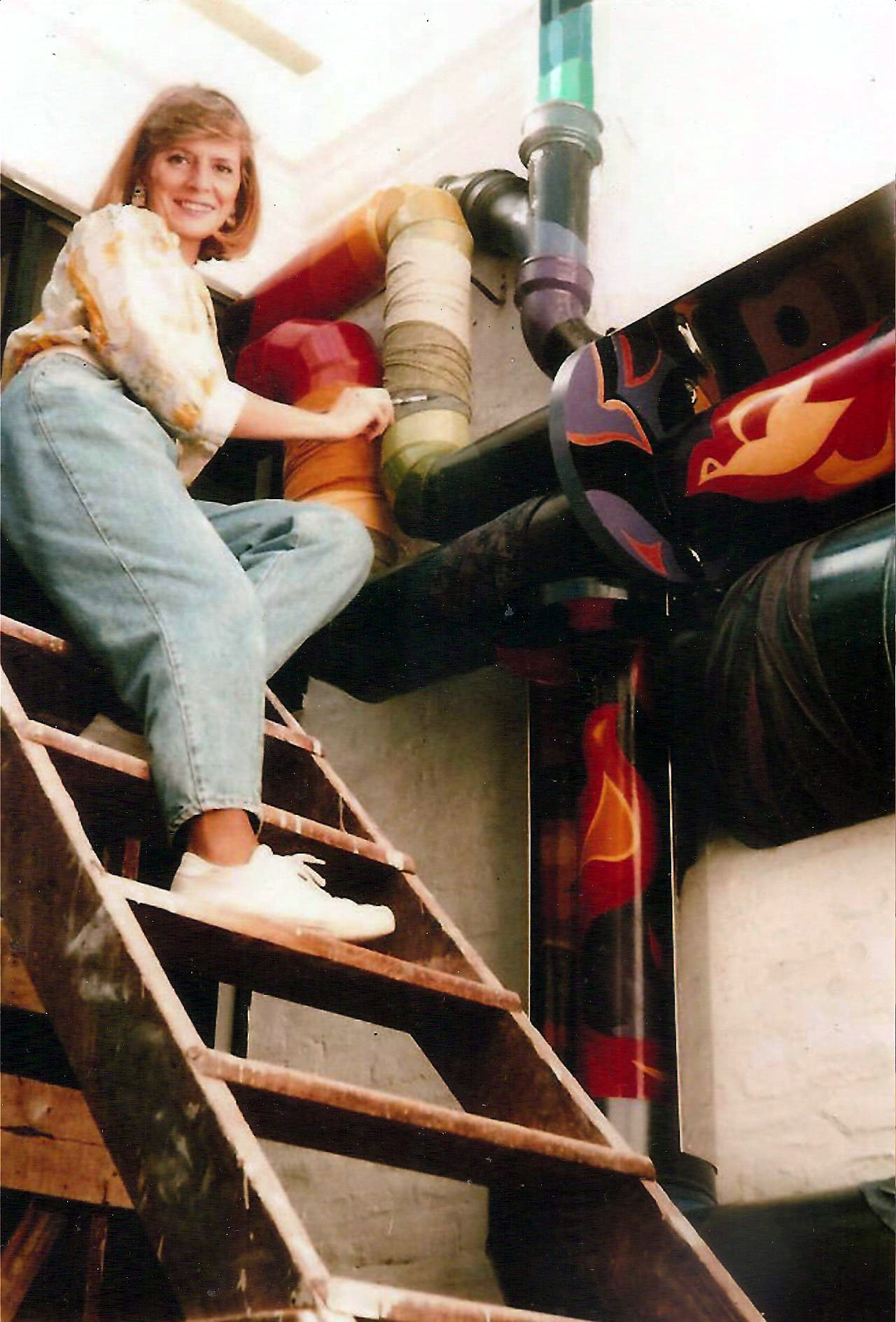 AT es convocada para realizar un mural en un Shopping de Moda. Frente al muro elegido por los arquitectos, ella ve un antiguo caño pluvial existente, a 4,5m de atura.